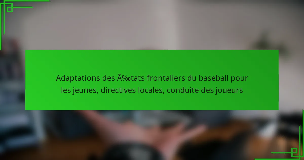 Dans les États frontaliers, les adaptations du baseball pour les jeunes sont essentielles pour s’adapter aux structures de ligue diverses et aux réglementations locales, garantissant que les joueurs peuvent participer efficacement. Les directives locales se concentrent sur les protocoles de santé et les réglementations spécifiques à l’âge pour promouvoir la sécurité et le fair-play. De plus, la conduite des joueurs met l’accent sur le respect et l’adhésion aux règles, favorisant un environnement positif pour tous les participants.