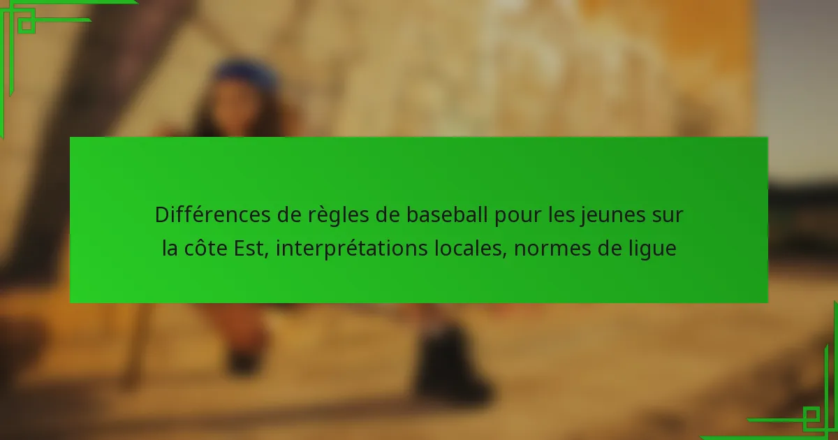 Les différences de règles dans le baseball pour les jeunes à travers la côte Est affectent considérablement le jeu, les stratégies d’entraînement et le développement des joueurs. Les entraîneurs doivent adapter leurs méthodes pour s’aligner sur les interprétations locales, tandis que les joueurs vivent des variations dans le développement des compétences en fonction de ces règles.
