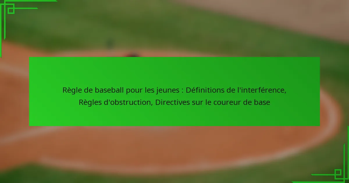 Comprendre les règles d’interférence et d’obstruction dans le baseball pour les jeunes est essentiel pour maintenir un jeu équitable et la sécurité sur le terrain. L’interférence se produit lorsqu’un joueur perturbe le jeu, tandis que l’obstruction implique un joueur de champ entravant la progression d’un coureur sans avoir le ballon. De plus, des directives claires sur la course aux bases aident les joueurs à naviguer efficacement sur les bases, garantissant un jeu fluide et agréable pour tous les participants.