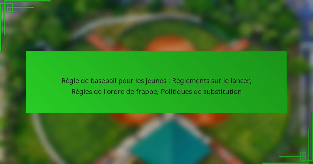 Le baseball pour les jeunes est régi par des règles spécifiques visant à protéger les jeunes joueurs et à promouvoir une compétition équitable. Les principales réglementations incluent des limites de lancés pour prévenir les blessures, un ordre de batteurs cohérent établi avant le match, et des politiques de substitution qui guident les remplacements de joueurs pendant les matchs. Comprendre ces règles est essentiel pour les entraîneurs, les joueurs et les parents afin d’assurer une expérience sûre et agréable sur le terrain.