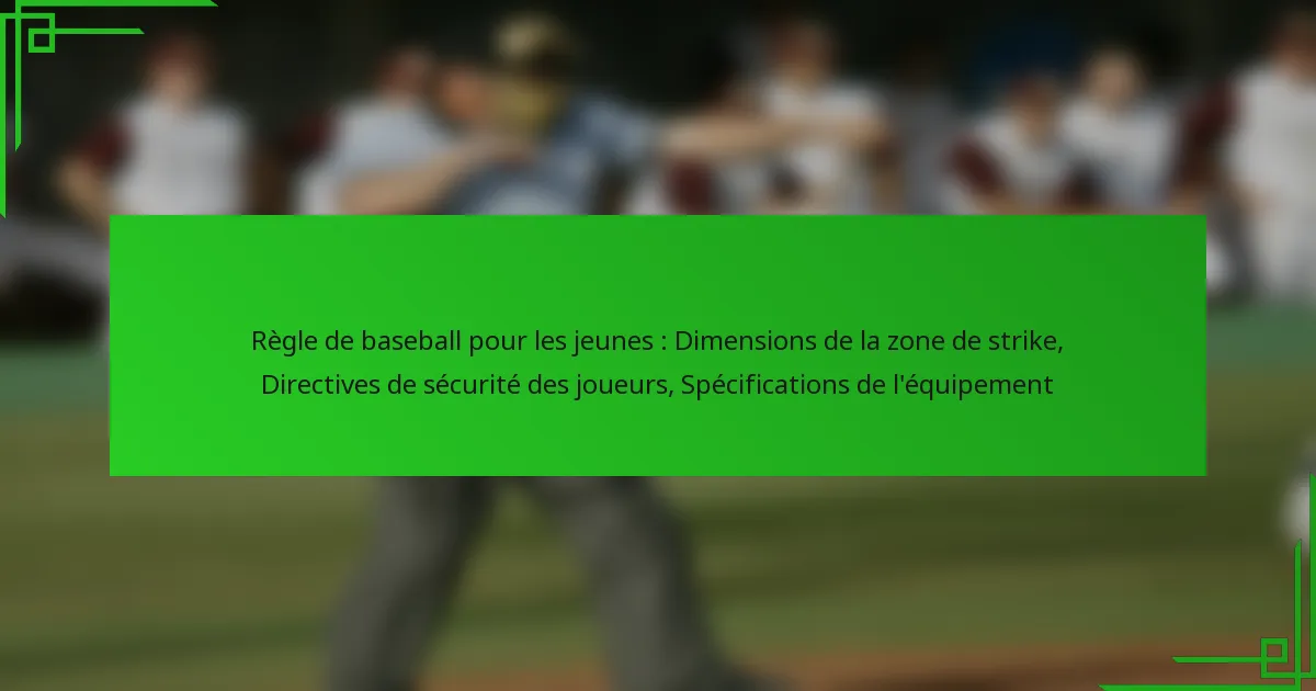 Règle de baseball pour les jeunes : Dimensions de la zone de strike, Directives de sécurité des joueurs, Spécifications de l’équipement
