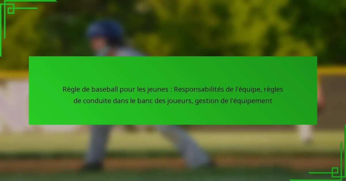 Règle de baseball pour les jeunes : Responsabilités de l’équipe, règles de conduite dans le banc des joueurs, gestion de l’équipement