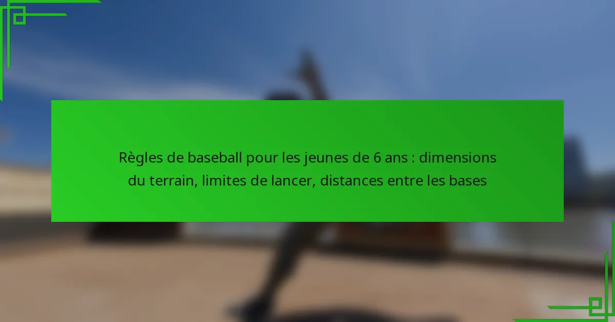 Pour garantir le respect des règles du baseball pour les jeunes pour le 6u, il est essentiel de respecter des directives spécifiques concernant les dimensions du terrain, les limites de lancer et les distances entre les bases. Comprendre ces règles aide à créer un environnement de jeu sûr et équitable pour les jeunes athlètes.